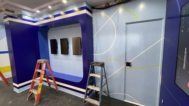 And to keep this sustainable for future events and to help not mess up any of our art - the “warming tunnel” was a bit of smoke and mirrors. We used lights that we turned red to signify heat, while using vents to bring in hot air. And if it was hot outside, could turn the lights blue and bring in cool air.