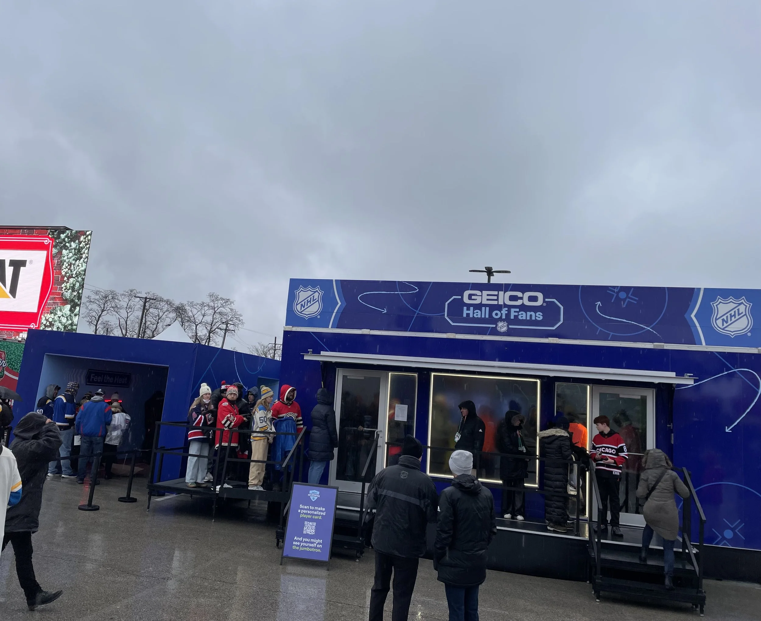 A space designed to showcase & reward the most passionate hockey fans with more opportunities to score the fan advantage and go all out for their team. The experience started with a warming tunnel (Winter Classic was held on New Years Eve in Chicago) which led you into a Photo Booth creating your own hockey player card with stats, seeing your card amongst other fans, and reading about other historical fan moments all nestled around items we borrowed from the real NHL Hall of Fame.