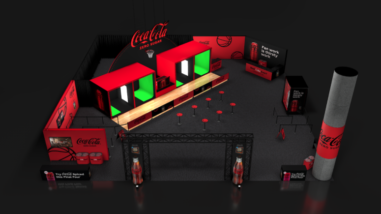 Fans start by fueling up with a Powerade sample, then are guided to each dynamic photo-op moment along an interactive court that transitions through key highlight making moments.